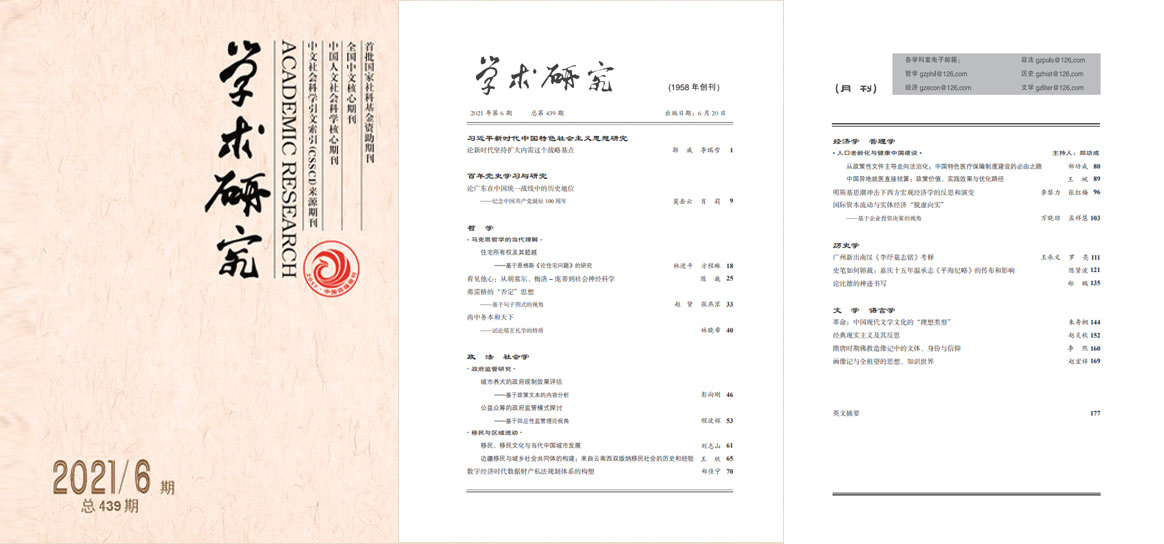 地址:廣州市天河區天河北路618號廣東社會科學中心B座7樓學術研究雜志社